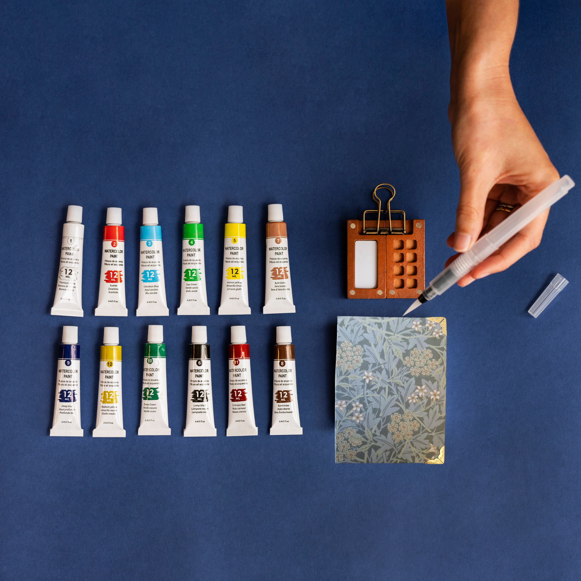 Descubre el placer de pintar en cualquier lugar con este completo kit de acuarela, perfecto para principiantes, aficionados o artistas en movimiento. Todo lo que necesitas cabe en la palma de tu mano, con materiales seleccionados cuidadosamente para asegurar una experiencia práctica, cómoda y de calidad.
